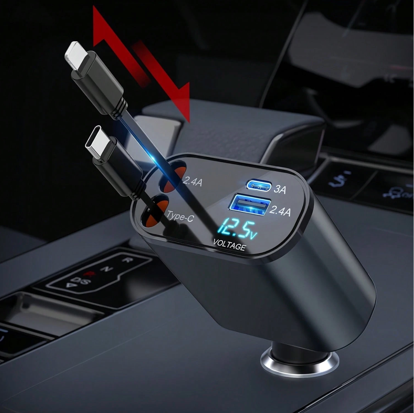Super Fast Car Charger, Retractable cables, Type C, USB and lightning, 120W Max Diwali Offer avail now, use code DIWNEX200