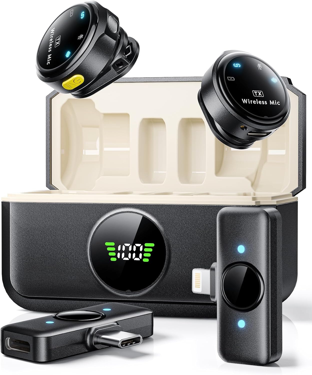 2 Pack Wireless Lavalier Microphone for iPhone – Hi-Fi Audio | 700ft Range | 30H Battery | Plug & Play